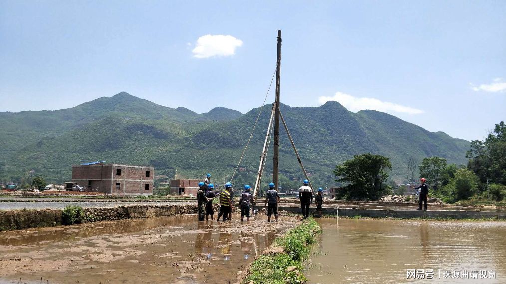 眼下正是農(nóng)忙時(shí)節(jié)。云南曲靖師宗龍慶黑爾到處是一派繁忙的景象,犁田的、施肥的、撒種的、搭塑料棚的……在黑爾村委會(huì)大寨,遠(yuǎn)遠(yuǎn)的看著水田里一群戴藍(lán)色安全帽的人,頂著烈日熱火朝天地干著,栽秧還要帶安全帽?走進(jìn)一看,因施工地點(diǎn)條件限制,一群電力工人正艱難的用人力搬運(yùn)電桿,趴桿立桿。該項(xiàng)目屬于師宗縣2020年第一批配電網(wǎng)基建應(yīng)急項(xiàng)目——師宗供電局大同供電所龍慶鄉(xiāng)黑爾村委會(huì)大寨抽水變新建工程。