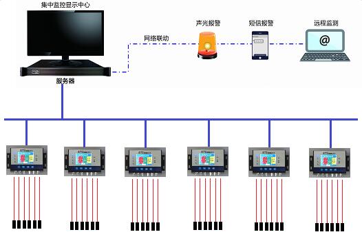 變壓器繞組及電纜接頭溫度監(jiān)測報警系統(tǒng)采用漢光專用熒光光纖測溫探頭進行敷設(shè)。每個變壓器采用一套熒光光纖測溫主機,HKFO-600YG系統(tǒng)接入后臺通過服務器進行管理。當發(fā)生溫度異常警報時可聯(lián)動聲光、短信報警功能,報警信息將發(fā)送到運維用戶手機上,也可通過電腦主機遠程監(jiān)控查看現(xiàn)場狀態(tài)。